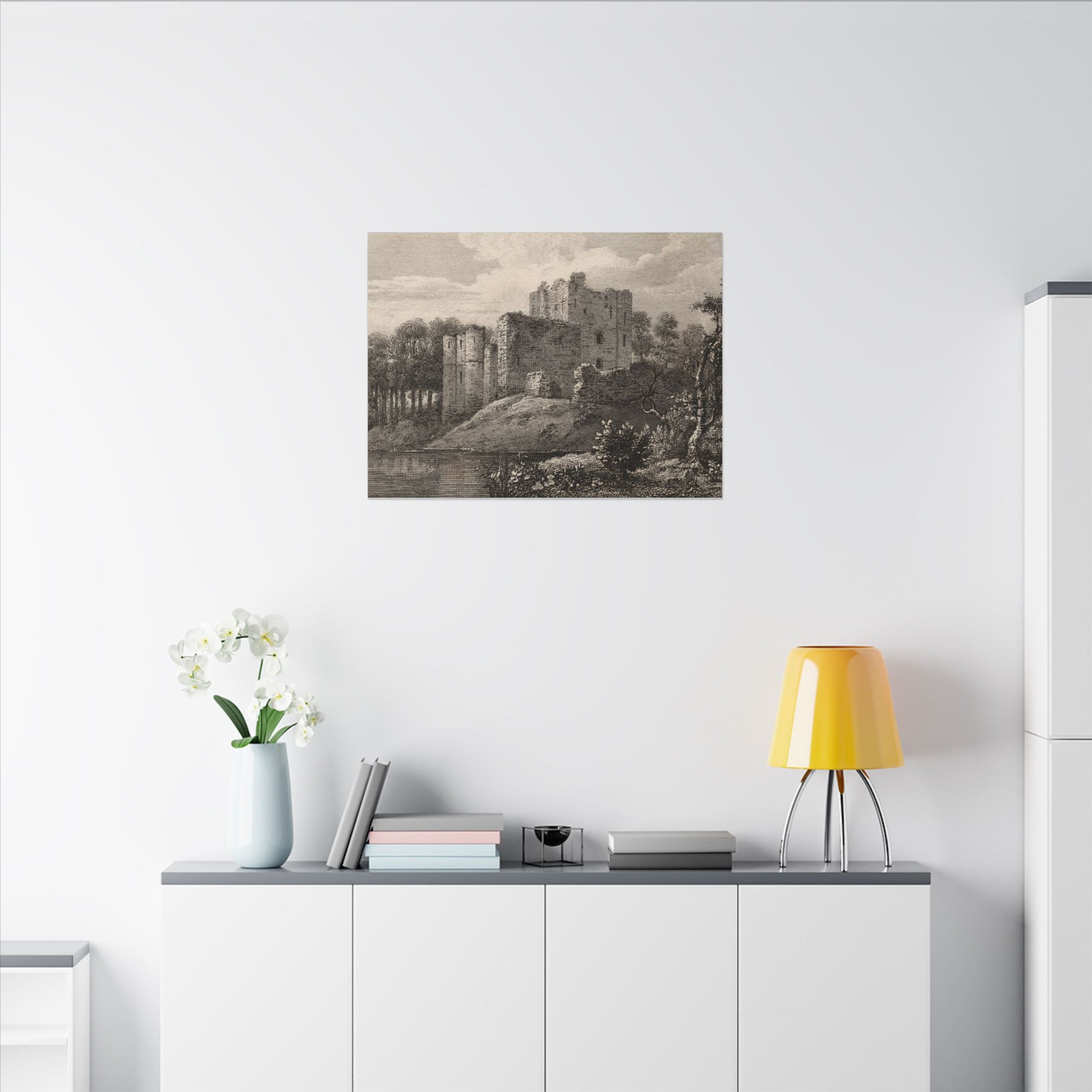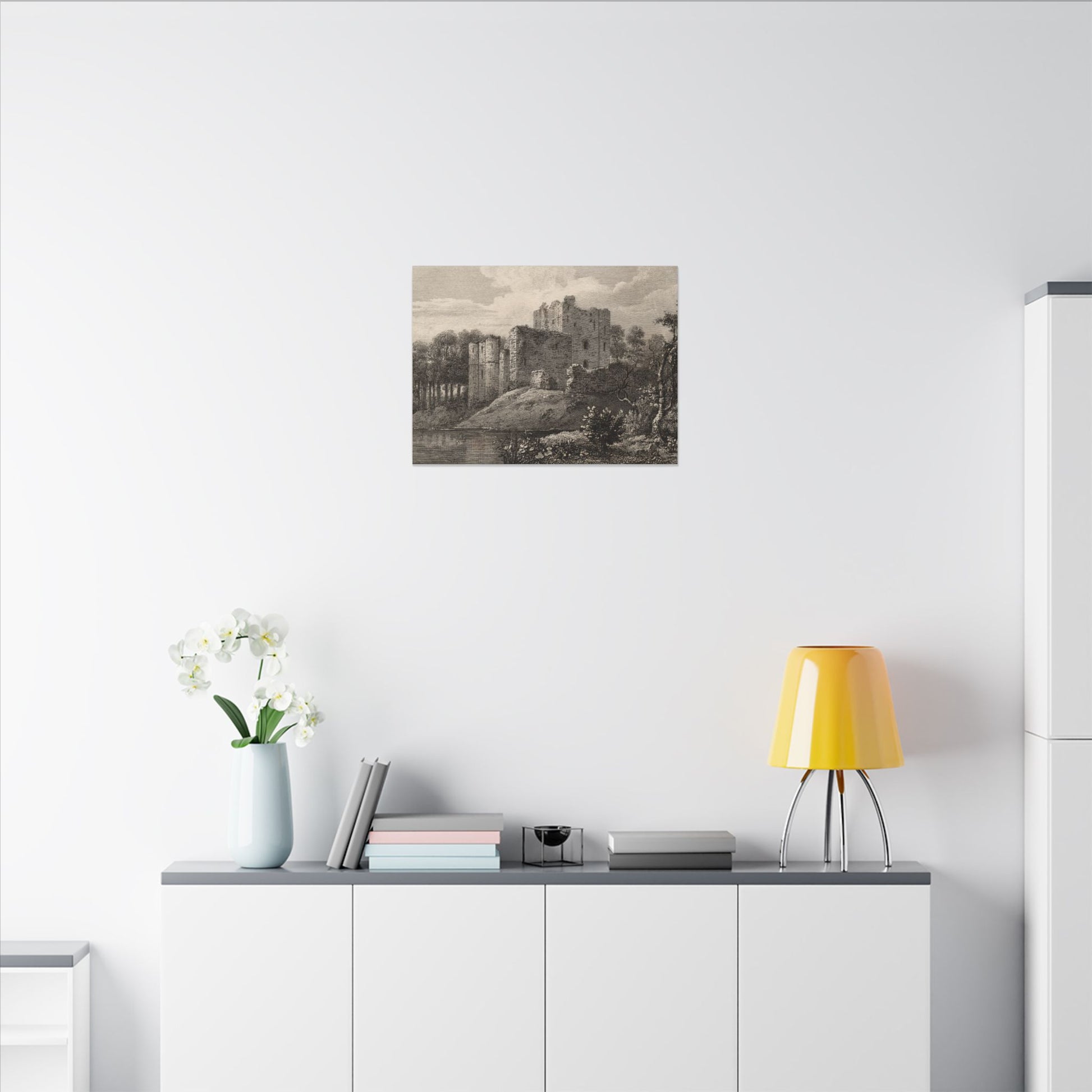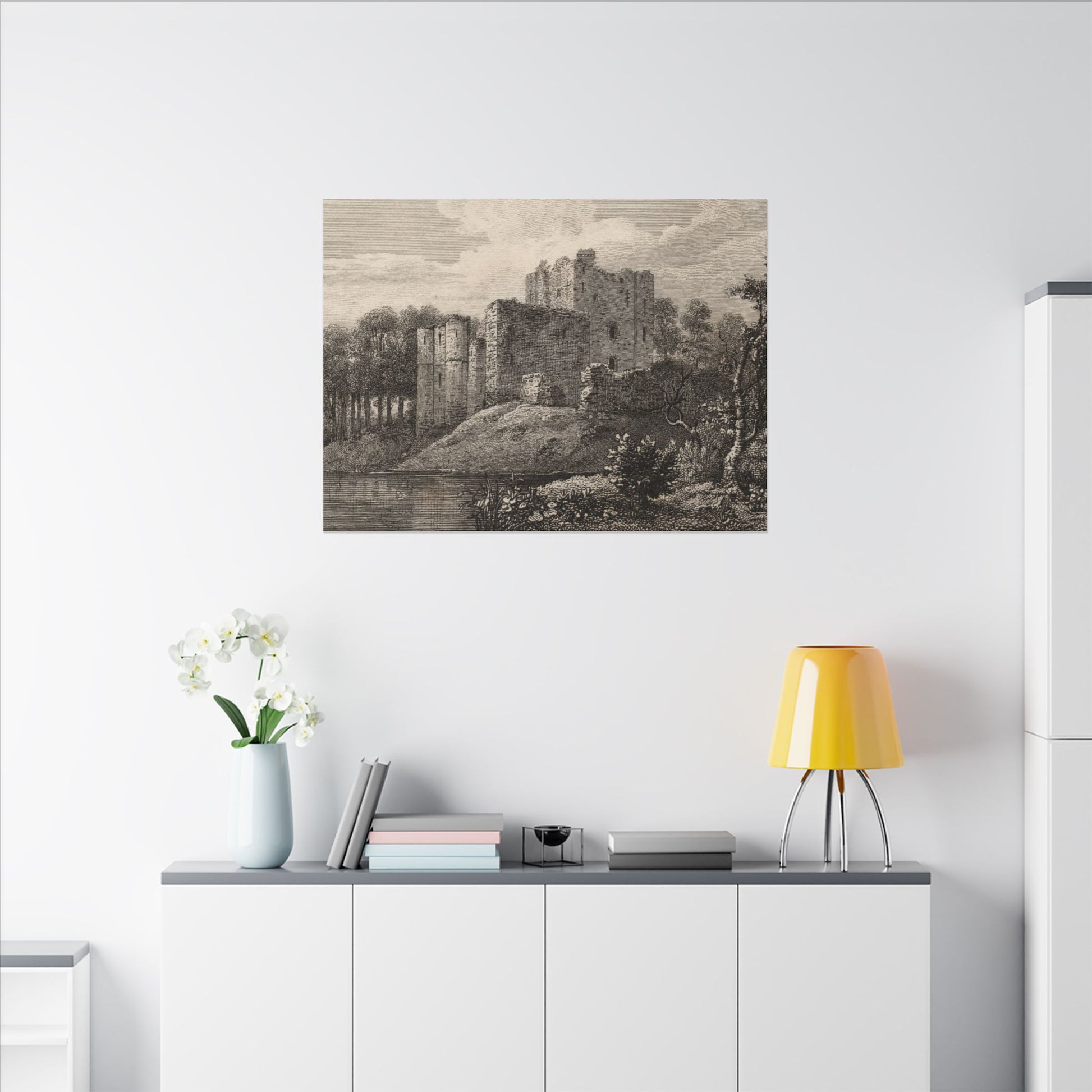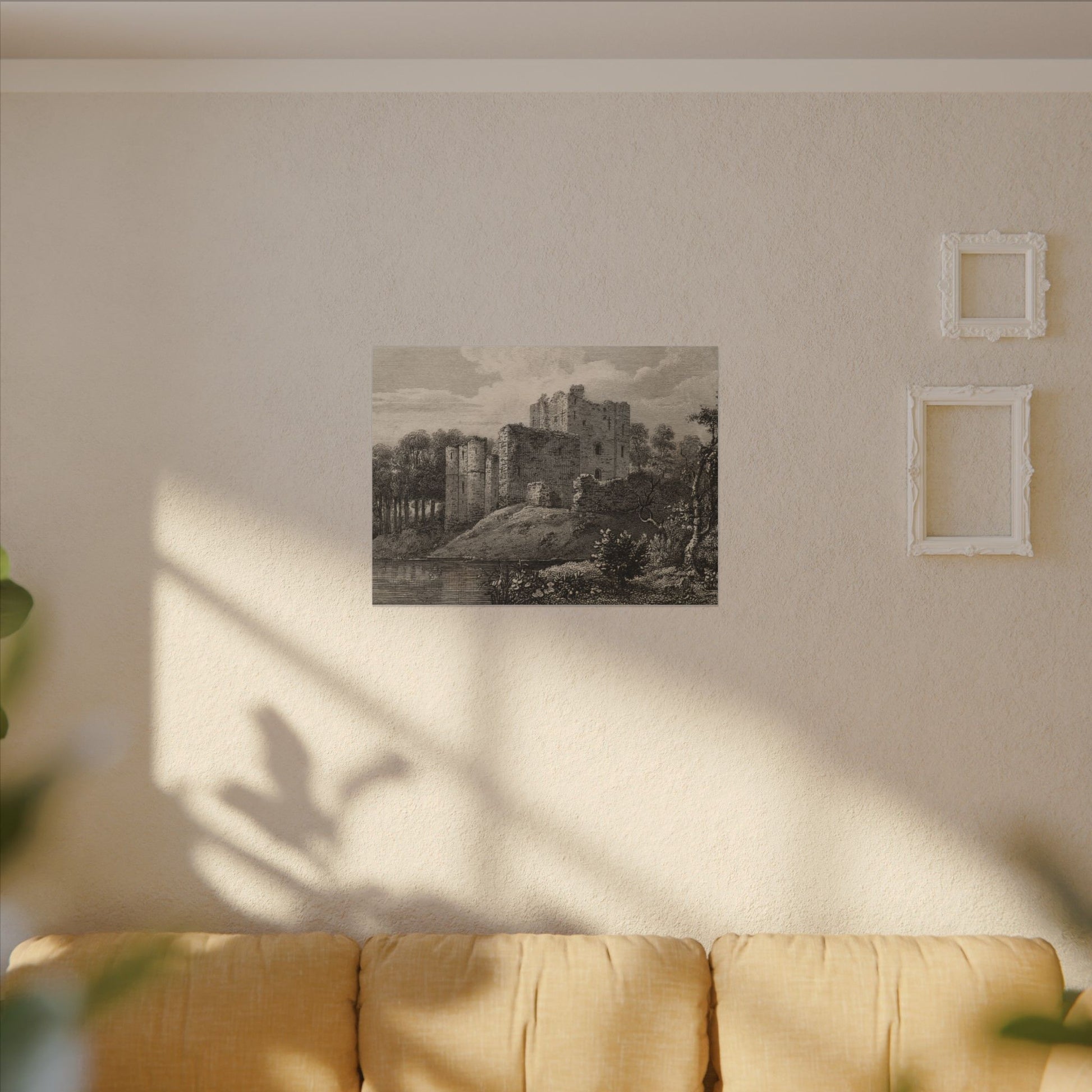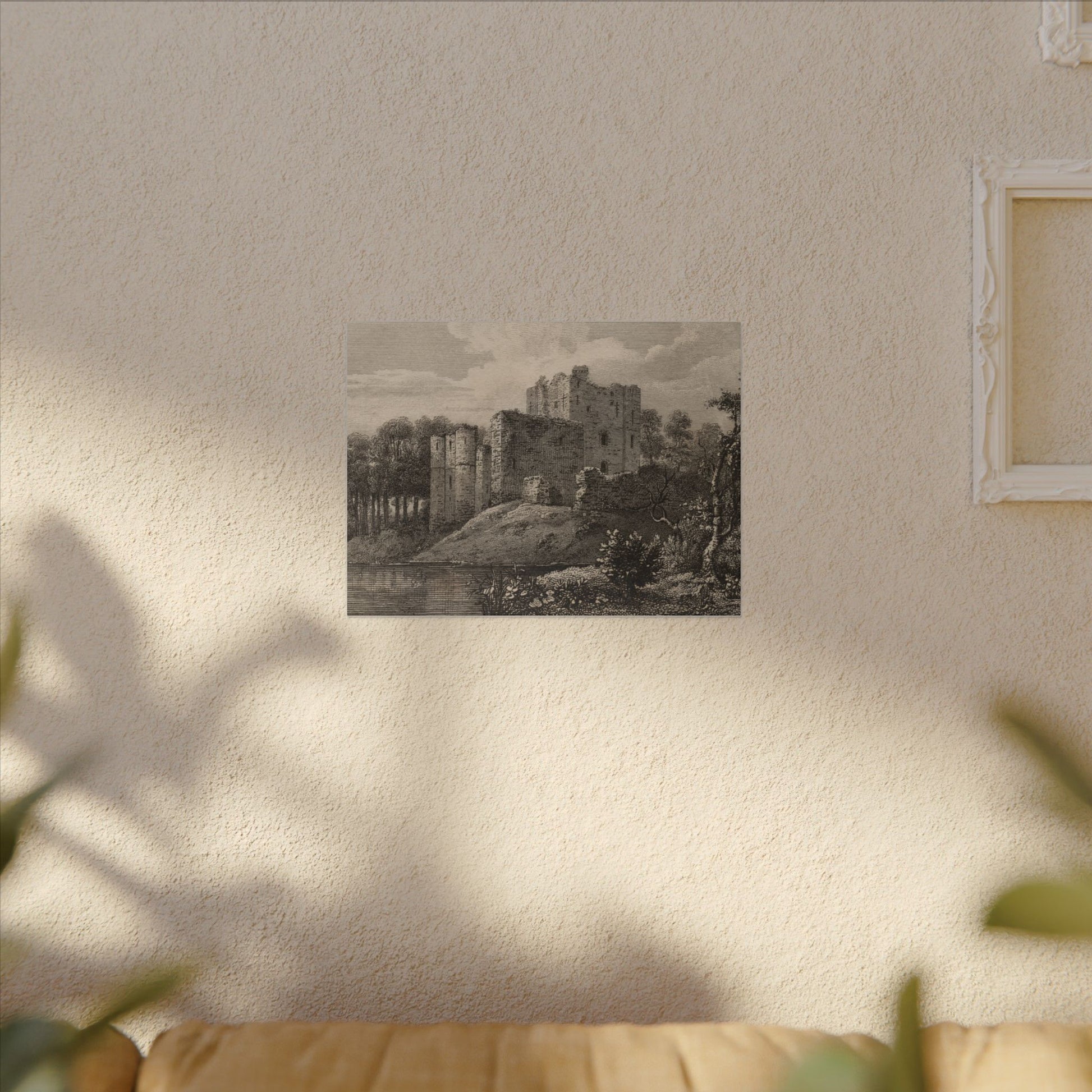 Enhance your home decor with a stunning canvas print of Brougham Castle, Cumberland. The copperplate engraving from the late 18th to early 19th century captures the historic castle on the River Eamont, perfect for history enthusiasts and vintage art lovers. This eco-friendly canvas is made with durable cotton and polyester composite, featuring a unique coating for vibrant, long-lasting prints. Hang it with confidence using the included rubber dots for stability.